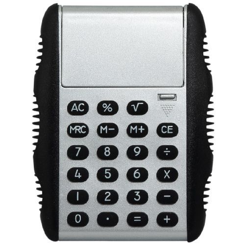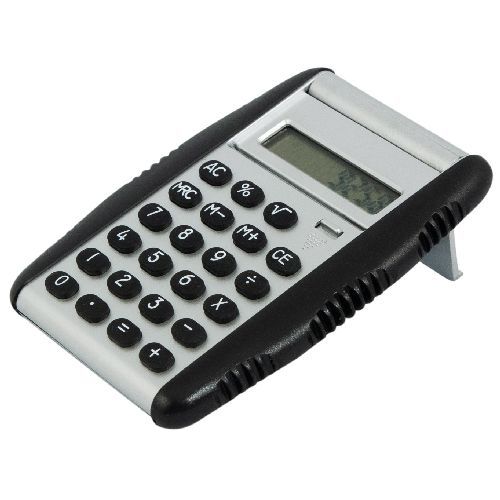 Streamline your calculations with Stitchy Lizard's Lifto Flip Calculator, a sleek and innovative desk accessory designed for convenience and style. This compact calculator features an elegant silver case with a modern black rubberized edge, keys, and a clear LCD display. Its standout feature is its automatic folding and lifting mechanism, allowing it to transform into an easel-like display with ease, perfect for quick calculations in any setting.