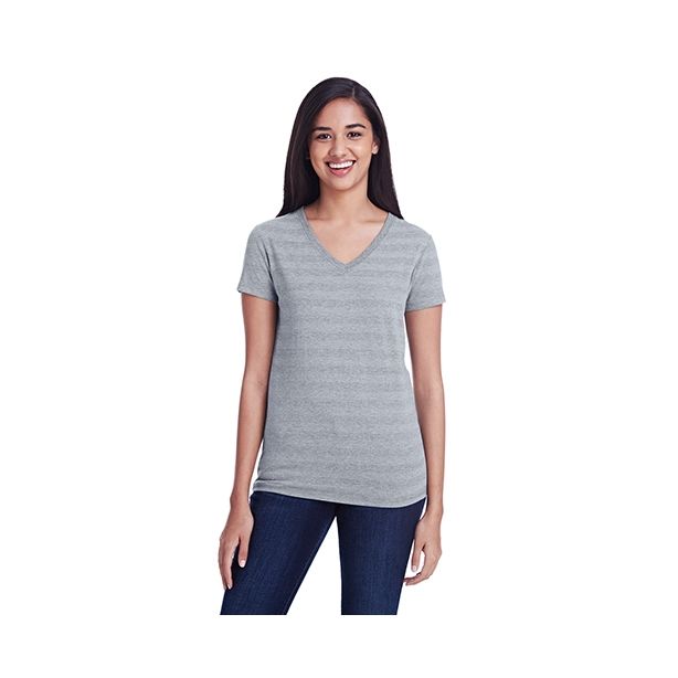 Threadfast Ladies' Invisible Stripe V-Neck T-Shirt