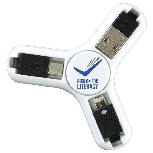 PLAY & CHARGE 3-IN-1 CELL PHONE CHARGING CABLE SPINNER (Min 100)
