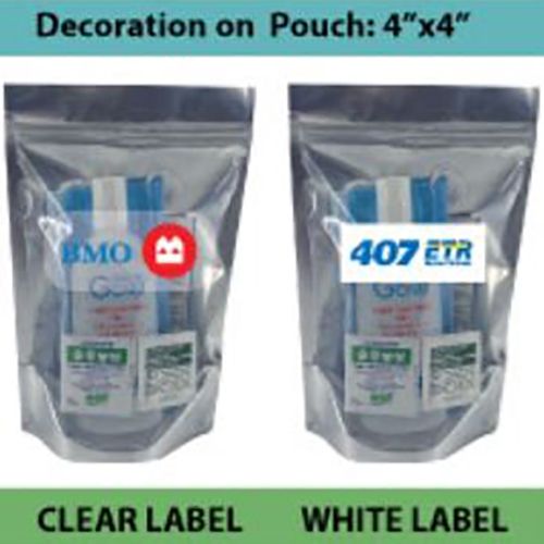 Decoration on Pouch 4x4 – Label with Clear back or White