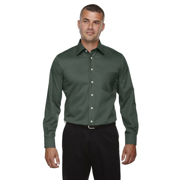 - Fused collar, cuffs, and placket