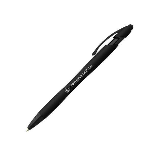 - This medium black ballpoint pen also features a touchscreen stylus at the top, making this the perfect 2-in-1 promotional gift.