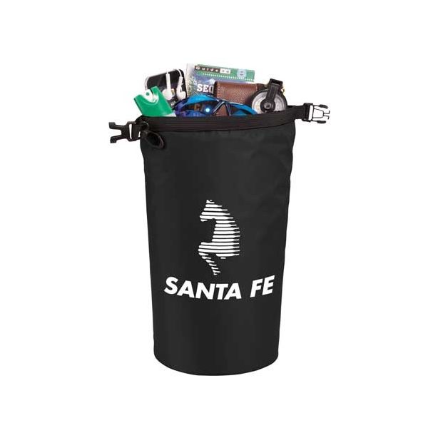 Roll-top closure with plastic buckle to keep your valuables dry and safe during outdoor activities. Empty bag rolls up for easy, compact storage.
