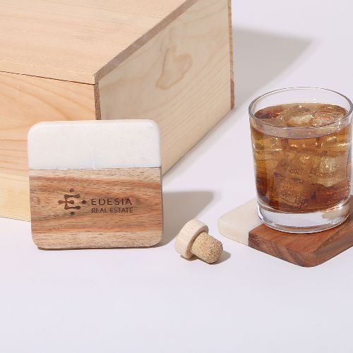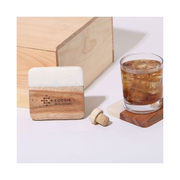 Acacia Wood & Marble Coaster Set (Min 25 sets)