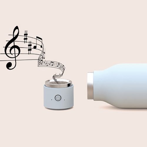 The bottle has a double wall, vacuum insulated copper lined 18/8 stainless steel body.The bottle styled body has the speaker on the top of the bottle instead of underneath. This helps make the speaker sound better, it also gives you easy access to the speaker, permitting you to power on and off, change the playlist, and skip or repeat the last song. The wireless feature sets up easily to your cell phone and recharges rapidly in approximately 1 hour with the capability of running for hours after charging. The lid contains an IPX4 water proof speaker so no need to worry if it gets splashed with water!