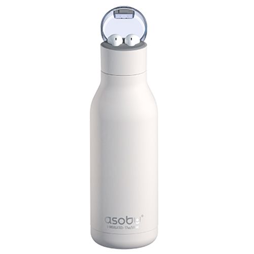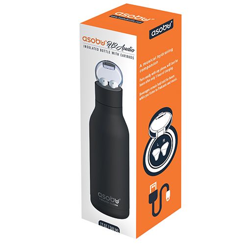 A musical, hydrating companion, the ASOBU® H2 Audio lets you enjoy your music along with your water or coffee wherever you are! we took one of our most popular, stainless steel, double wall vacuum insulated bottles, and combined it with a high quality set of two rechargeable wireless ear buds and a rechargeable portal.