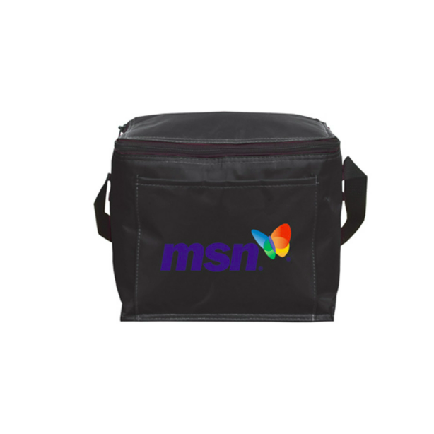 Perfectly sized for individual lunches or small outings, this cooler bag has a capacity to hold up to six cans. It includes a non-adjustable, non-detachable carry strap for easy transport and a front slash pocket, ideal for napkins, utensils, or small accessories.