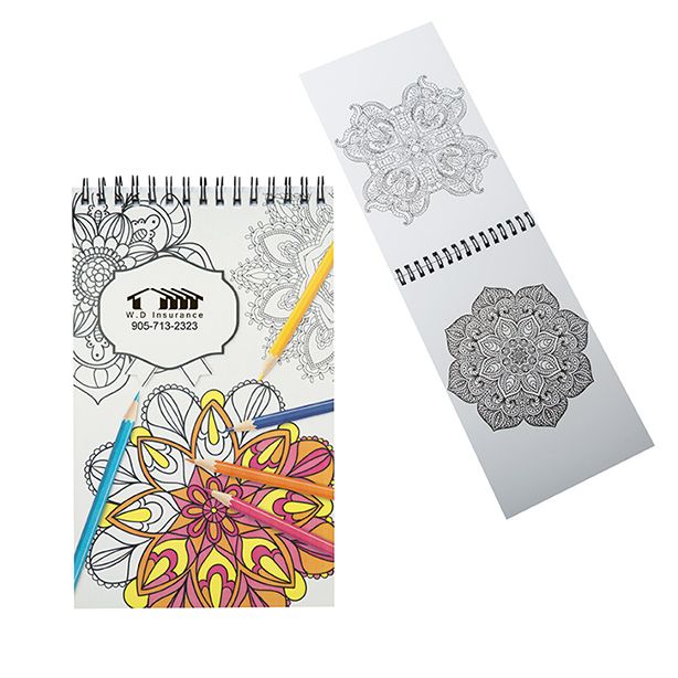 Each mini colouring book features 30 sheets of high-quality 120 gram paper, boasting 60 different intricate designs to inspire hours of creative exploration. The convenient top metal spiral binding allows the book to lay completely flat, making it easy to colour without creases. The durable 250 gram paper cover offers a prime canvas for your custom branding. Measuring 5 1/8″ W x 8 1/2″ H x 1/4″ D, this portable colouring book is an excellent way to keep your logo visible while providing a beneficial activity.