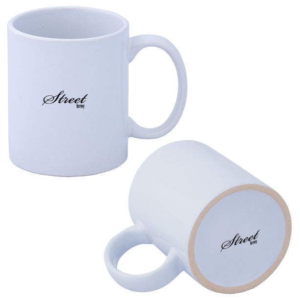 Pad Print: For branding on the bottom of the mug (1.75″ W x 1.75″ H). Standard decoration includes one color in one location, with full-color and multi-color options (no metallic inks) available.