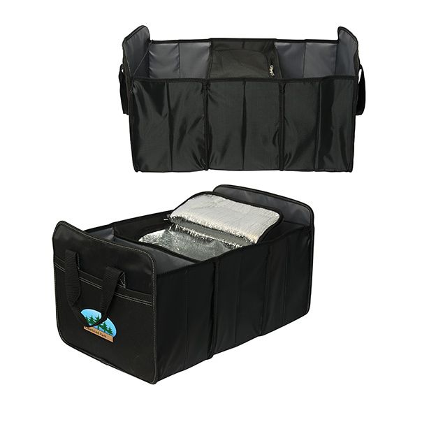 Keep your vehicle organized and your brand prominent with the Bristal Trunk Organizer (CP9169). This collapsible organizer features three compartments, including an insulated cooler section, and sturdy handles. 1 Customize it with your logo at Stitchy Lizard for a practical and effective promotional item or corporate gift!