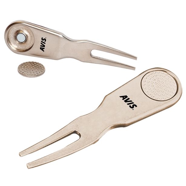 Crafted from a durable zinc alloy, this divot repair tool is built to last. It features a magnetic spot that securely holds a removable metal ball marker, ensuring both tools are always within reach. The tool's ergonomic design makes it easy and efficient to repair divots, maintaining the pristine condition of the golf course.