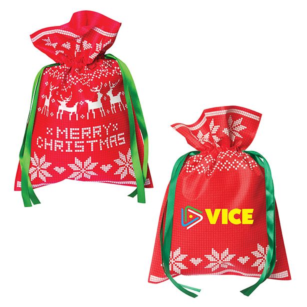 Small Non Woven Holiday Gift Bag 9.75” W x 14” H