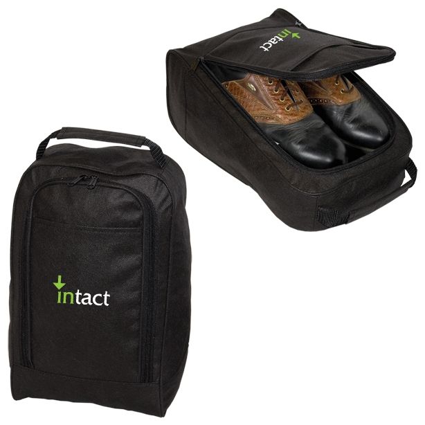 Available in classic Black, this golf shoe bag provides an excellent backdrop for your custom branding.