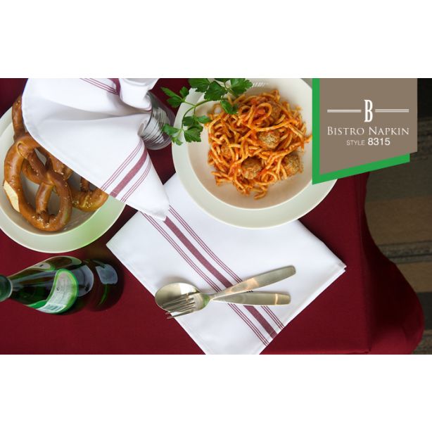 -This new bistro style napkin is made from a 7.2 oz 100% MJS Spun Polyester fabric for durability and colour fastness