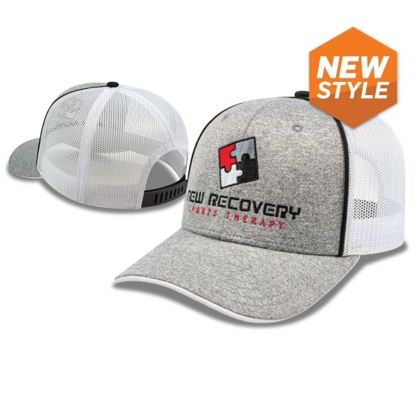 - Poly/spandex blended front with trucker mesh back and chino twill piping