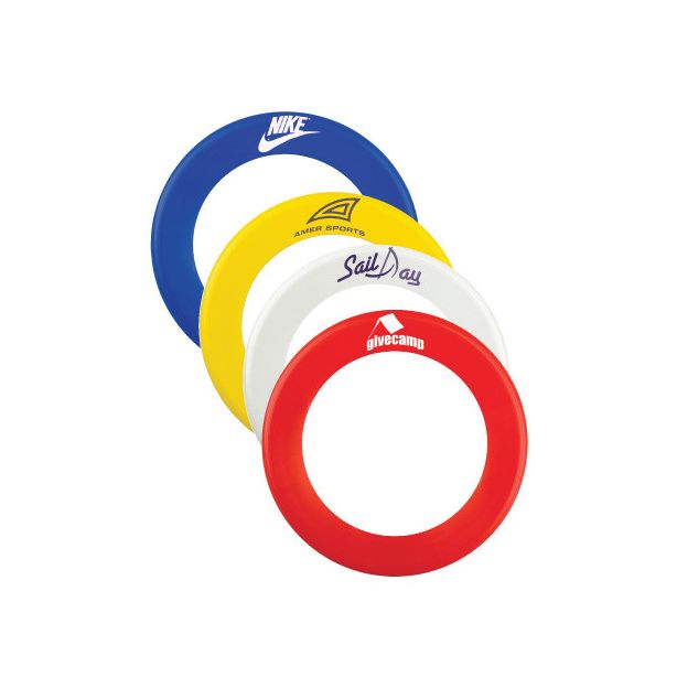 Available in vibrant colors including White, Yellow, Royal Blue, and Red, this Fling Ring offers excellent backdrops for your custom logo or message. Assorted colors are also available in lots of 50 per color.