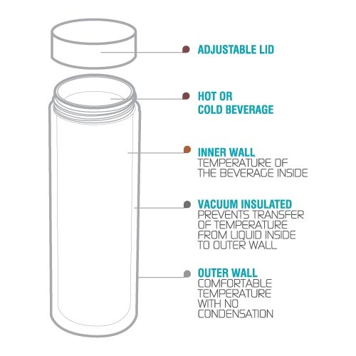 The slender design of this trendy bottle makes it the perfect travel companion, slides effortlessly into laptop bags, carry-on luggage and backpacks.