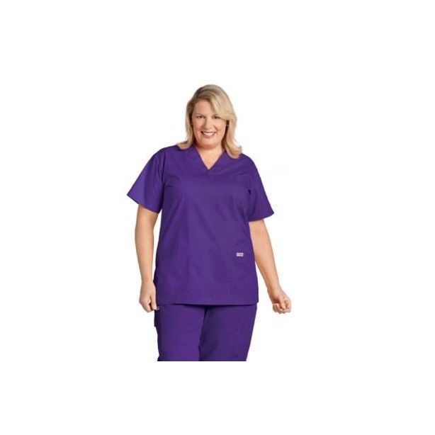 Four pocket v-neck scrub top. Five pocket elastic/drawstring scrub pants.