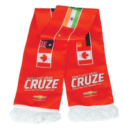 Swing your "Scarves!" and show off your brand with custom soccer scarves.
