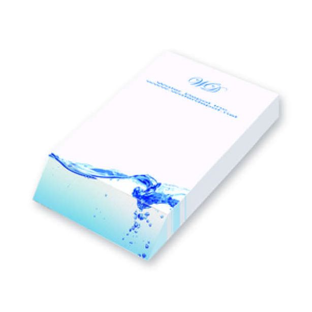 Base pricing includes 1 colour imprint, 1 side, on white adhesive paper only & a regular angle notepad slant cut.