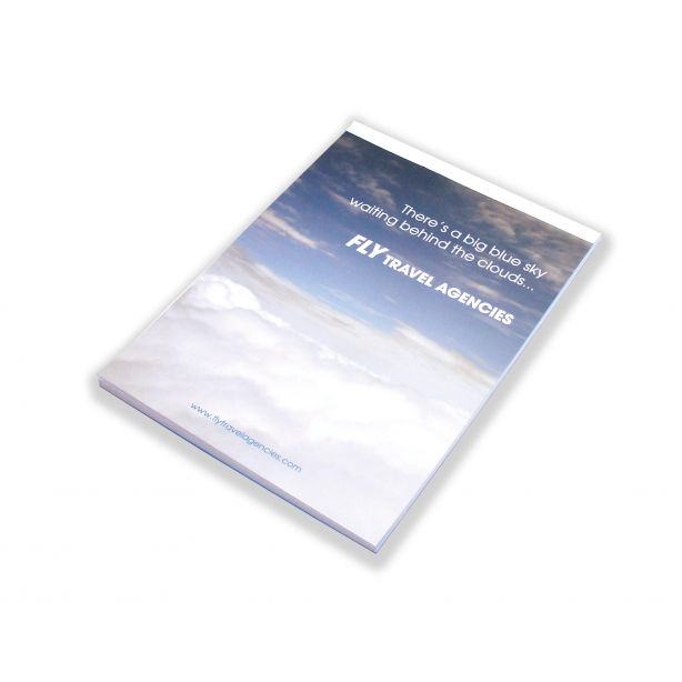 Base pricing includes 4 colour process imprint and glossy lamination on front and back of note pad covers.