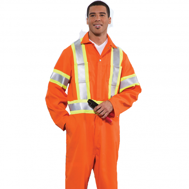 For the ultimate in visibility this poly/cotton orange coverall comes with an extra wide reflective tape with good coverage on front, back, sleeves and legs
