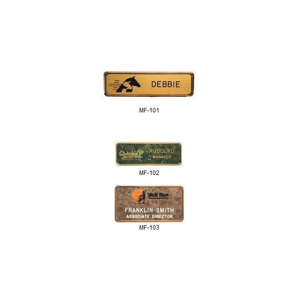 Brass plated metal frame badge with interchangeable laminated plastic insert