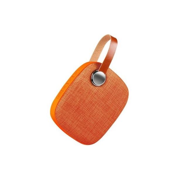Wireless Bluetooth speaker that combines great sound quality (2 x 3W) with a trendy design in plastic, fabric and leather.
