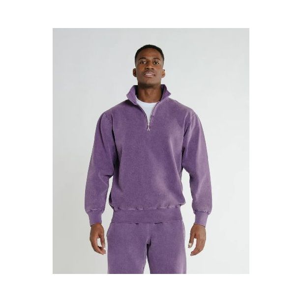 Wash inside out in cold water, avoid bleach, and tumble dry low or hang dry. The garment-washed fleece maintains colour, shape, and embroidered detail over repeated laundering.