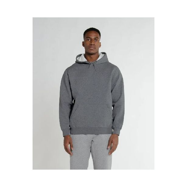 Four-needle flat-lock stitching and bar-tacked kangaroo pocket for enhanced durability