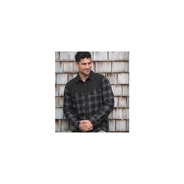 Classic plaid design combined with solid panels, highlights this fleece-lined, breathable cotton-blend thermal shirt.