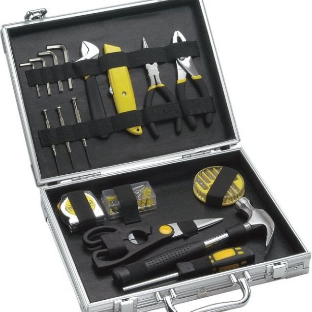 - Includes soft touch needle nose pliers, slip lock pliers, adjustable crescent wrench, hammer, tape measure, scissors, Allen key set, micro screwdriver set, screwdriver set and an assortment of plus, screws and nails.