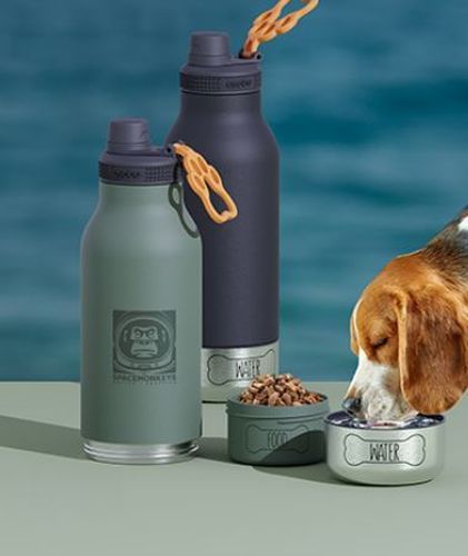 The Buddy comes with a detachable water bowl at the bottom of the bottle. Simply pour from the top of the bottle into your dog’s bowl so you can hydrate your dog throughout the day, while you can drink from the top with no cross contamination. Once you remove that bowl you have another bowl inside to store and feed your dog food or snacks. The bottle has an easy carry paw handle and has a 34 oz capacity so you and your best friend have more than enough water to share.