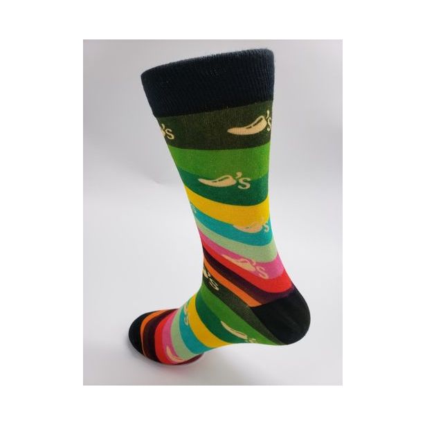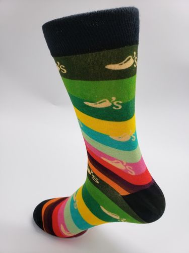 - 200 needle Bamboo fabric or Cotton Dress Socks (Mid calf high) with seamless 360 degree full color direct to garment imprinting.
