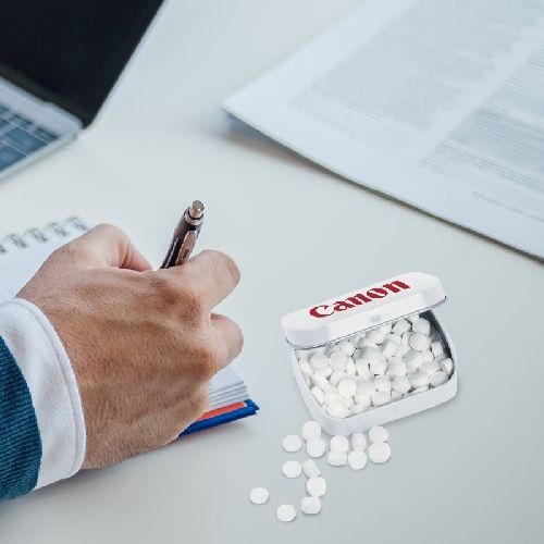 Each refillable tin features a stunning full-color domed imprint, allowing your logo, message, or intricate design to be reproduced with eye-catching vibrancy. Choose from classic tin colors like Black, Silver, or White to perfectly complement your branding. Inside, you'll find a good supply of refreshing, sugar-free MicroMints®, available in invigorating Peppermint or warm Cinnamon flavors. This combination of practical utility, stylish design, and customizable branding makes it a powerful and appreciated promotional item for trade shows, events, or everyday client appreciation.