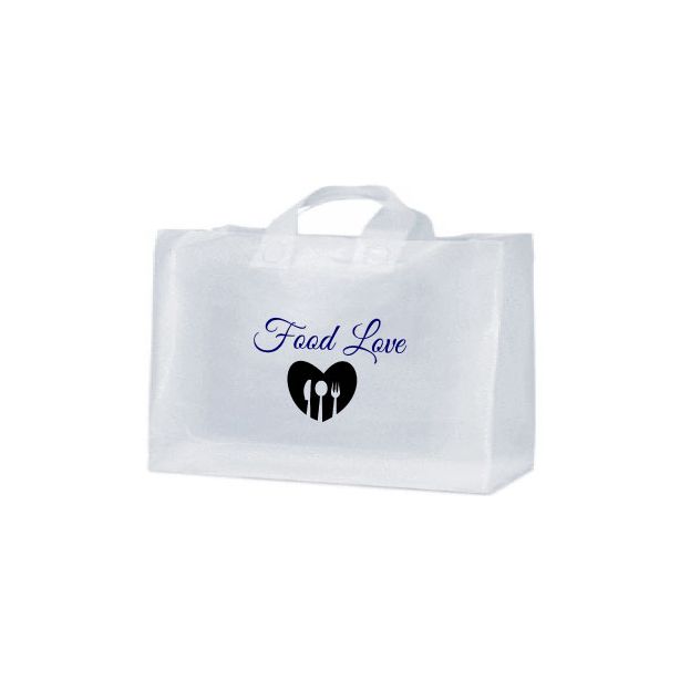 Water-resilient along with a cardboard insert in the gusseted bottom makes the Frosted Shopping bag ideal for events.